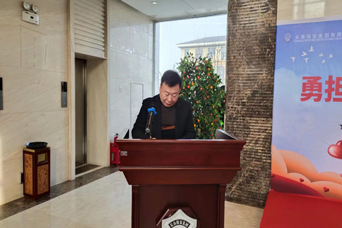 ? ? ? ? ?王鵬里書記在講話時,首先代表市政府獻(xiàn)血辦、市中心血站對長春保安集團(tuán)有限公司給予全市采供血事業(yè)的巨大支持表示感謝。他說,近幾年由于新冠疫情的影響,導(dǎo)致我市、乃至全國都出現(xiàn)血液供需緊張狀況,尤其在去年的12月份,因全國性的疫情防控政策的調(diào)整,我市街頭獻(xiàn)血人流量驟減,市中心血站出現(xiàn)血液庫存長期低預(yù)警狀態(tài),嚴(yán)重影響了臨床患者的救治工作。在這個特殊時期,長春保安集團(tuán)有限公司主動響應(yīng)市政府獻(xiàn)血辦的號召,積極組織1000余名員工參與獻(xiàn)血,為保障我市血液供應(yīng)平穩(wěn)過渡起到了積極地作用,也充分體現(xiàn)出新時代下企業(yè)的整體精神風(fēng)貌和主動擔(dān)當(dāng)?shù)拇缶忠庾R,此舉奉獻(xiàn)愛心,彰顯公益。