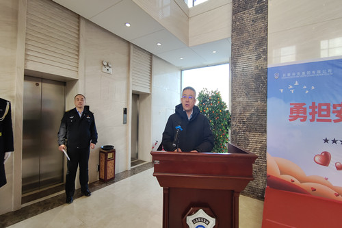 ? ? ? ? ?2023年2月9日上午,長春保安集團(tuán)開展了“勇?lián)脖V?zé) 奉獻(xiàn)熱血之愛”大型主題獻(xiàn)血活動,1000余名員工參加了無償獻(xiàn)血。在獻(xiàn)血活動開始之前,長春市衛(wèi)生健康委員會、長春保安集團(tuán)有限公司、長春市中心血站共同舉行了獻(xiàn)血活動啟動儀式。長春市衛(wèi)生健康委員會副主任范金明,長春市中心血站黨委書記、站長王鵬里,大眾卓越控股集團(tuán)總裁助理兼長春保安集團(tuán)總經(jīng)理楊向榮,長春保安集團(tuán)常務(wù)副總經(jīng)理范勝田出席儀式。獻(xiàn)血員工代表,中國吉林網(wǎng)、長春日報、長春電視臺長春新聞頻道城市速遞欄目、吉林電視臺守望都市欄目、市衛(wèi)健委官方公眾號等多家省、市新聞媒體參加了啟動儀式。在儀式上,王鵬里書記、范勝田副總經(jīng)理分別代表本單位講話,孫百庚中隊長代表獻(xiàn)血員工發(fā)言。儀式由長春保安集團(tuán)總裁助理、人力資源總監(jiān)張旭主持。