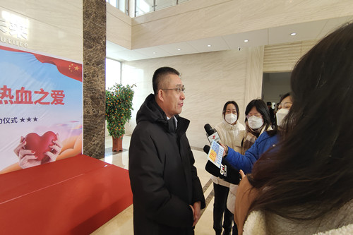 ? ? ? ? 在活動啟動儀式結(jié)束之后,參加活動的一行領(lǐng)導(dǎo)共同到采血車上看望、慰問了正在獻(xiàn)血的員工,向他們獻(xiàn)花表達(dá)敬意和感謝。之后,王鵬里書記,楊向榮總經(jīng)理分別接受了參加活動的省、市新聞媒體記者的集體采訪。