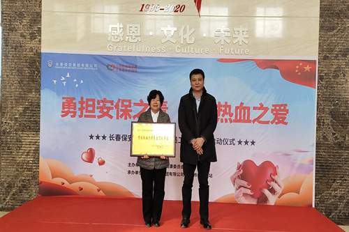 ? ? ? ? 在儀式上,長春市衛(wèi)健委副主任范金明代表長春市人民政府獻(xiàn)血工作領(lǐng)導(dǎo)小組辦公室為長春保安集團(tuán)頒發(fā)“獻(xiàn)血特別突出貢獻(xiàn)單位”獎牌 。長春保安集團(tuán)總經(jīng)理楊向榮上臺接受獎牌之后,宣布“勇?lián)脖V?zé),奉獻(xiàn)熱血之愛”集體獻(xiàn)血活動正式開始。全體獻(xiàn)血員工在集團(tuán)行政辦公室工作人員的組織下,開始有序到??吭诩瘓F(tuán)廣場上的長春市中心血站五輛采血車上進(jìn)行獻(xiàn)血。